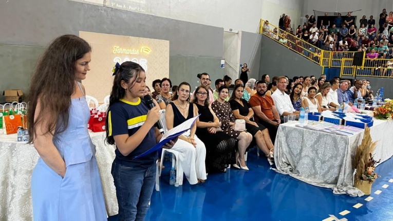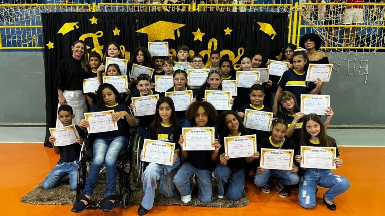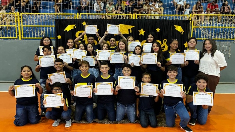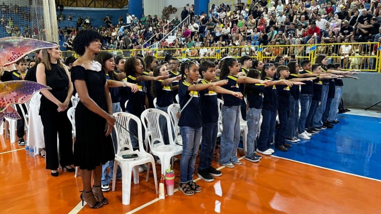 A solenidade foi marcada por homenagens, apresentações musicais, juramento e momentos de emoção que ficarão eternizados na memória dos alunos e de seus familiares, celebrando o encerramento de uma importante etapa na vida escolar das crianças.
