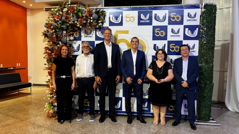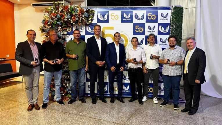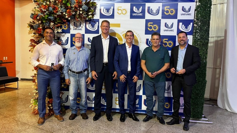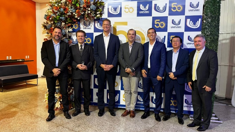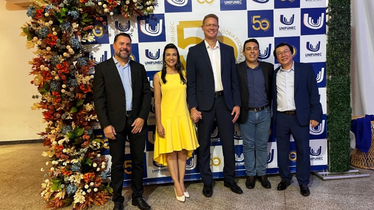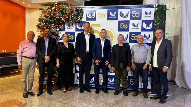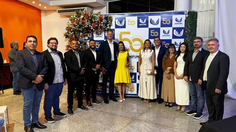 Na noite desta sexta-feira (20), o presidente da Câmara Municipal, Vaguinho Lopes, juntamente com os vereadores Ronaldo Lima, Teresinha do Gavas, Patrícia Tsutsume, Samuka da Limpeza, Marcos Favaleça, Maicon da Santa Casa e José Rollemberg, participaram da cerimônia de comemoração dos 50 anos do UNIFUNEC, marco importante na história da educação do município e de toda a região.