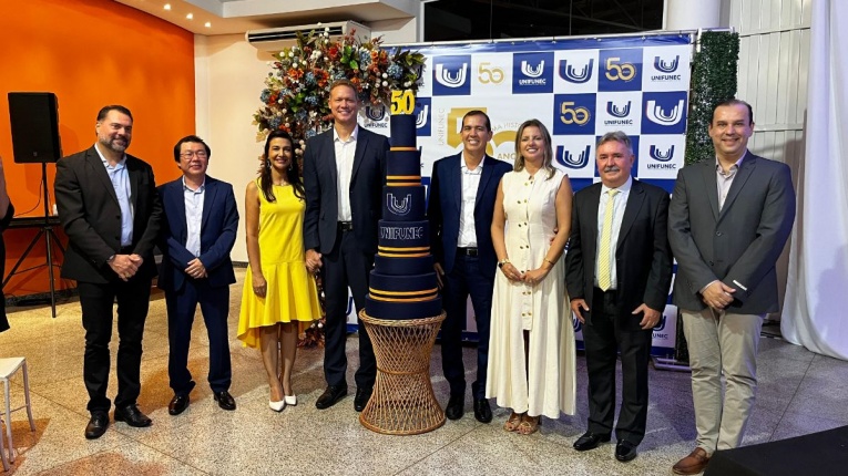 Estiveram presentes também o prefeito Evandro Mura, o vice-prefeito e presidente do UNIFUNEC, Fernando Benitez, as damas Elaine Mura e Fernanda Benitez, além de ex-presidentes, ex-diretores executivos, ex-diretores pedagógicos, professores, servidores, alunos e demais autoridades.